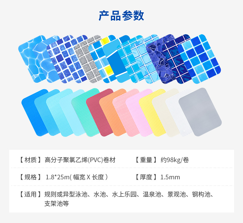 适用于酒店泳池、社区泳池 、私家泳池、水上乐园、温泉水疗、景观池、亲子泳池。适合各类基面泳池(包括瓷砖、马赛克、水泥和聚氨酯、钢结构等适用于室内、室外泳池),易于翻新改造。