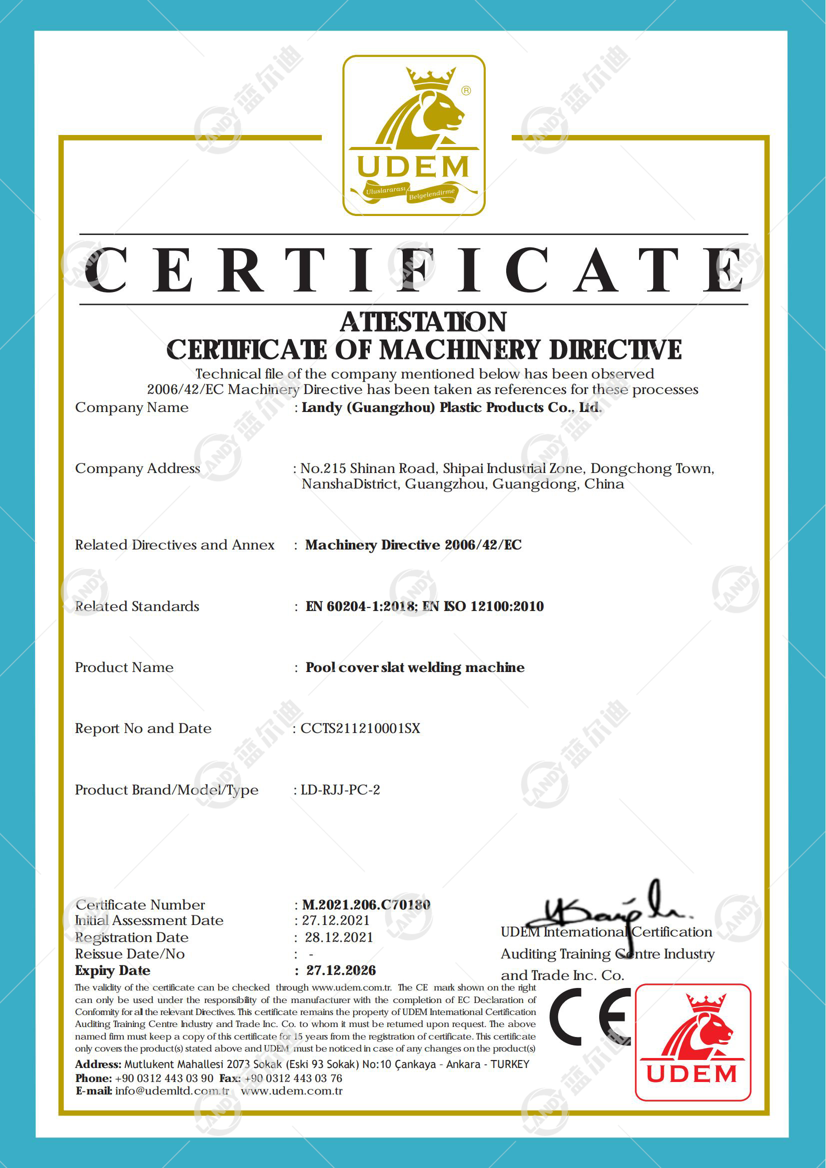 Obtaining a CE certificate is not an easy task and requires a series of processes such as strict technical document review. Users can check the validity of the certificate through the UDEM official website (www.udem. com. tr), ensuring the openness and transparency of the authentication.