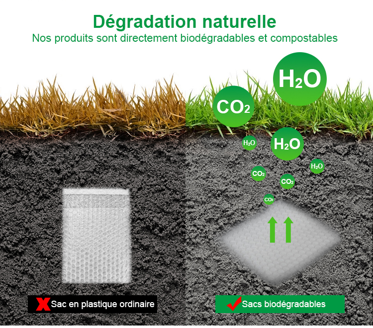 1. Le taux de dégradation passe le test International ISO: environ 60 jours ≥ 90% taux de dégradation, le compost est complètement dégradé dans l'eau et le dioxyde de carbone pendant la moitié de l'année