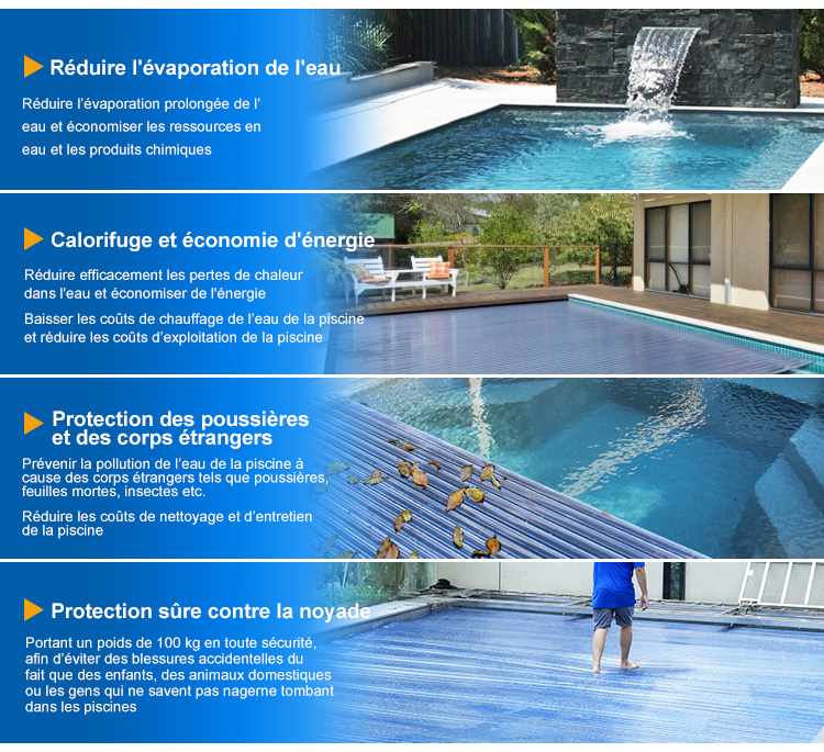 3, prévention de la pollution: inhibe la croissance des algues dans l'eau, résiste à la poussière et à la défoliation, protège la qualité de l'eau de la piscine et réduit le coût du nettoyage de la piscine;