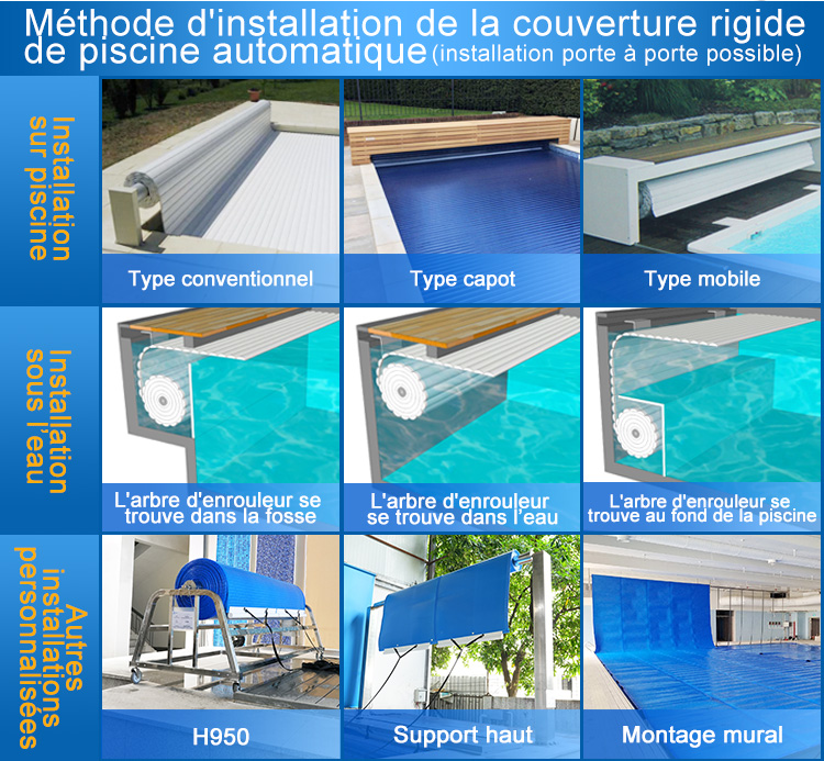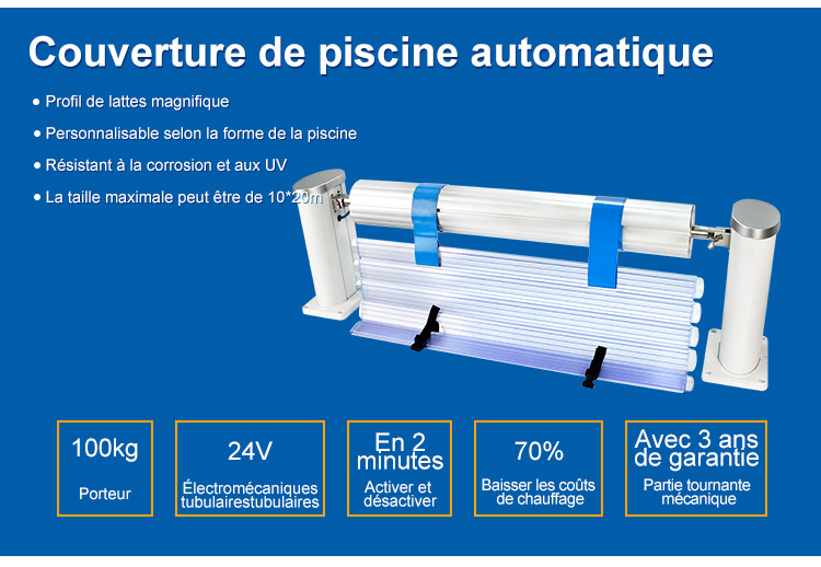 Après - vente: 3 ans de garantie sur le couvercle de piscine à lattes, 3 ans de garantie sur les machines tournantes, 1 an de garantie sur les équipements électroniques