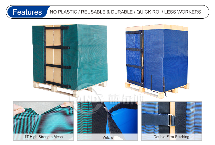 Landy puede personalizar innovadoras soluciones de envoltura de paletas a las especificaciones del cliente, proporcionando medidas de seguridad óptimas. Este producto cuenta con una alta calidad y una durabilidad excepcional. Además de ser más respetuoso con el medio ambiente, la envoltura de paletas reutilizable ofrece una mayor seguridad que la película estirable.