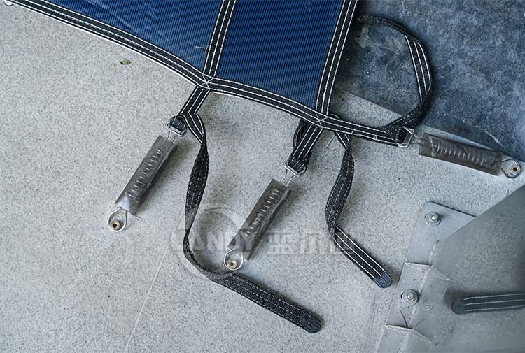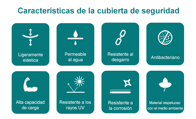 La capa exterior está recubierta de PVC y se añade un estabilizador antiultravioleta; Después de un proceso especial de protección contra el moho, se garantiza que la cubierta todavía pueda inhibir eficazmente la cría de moho en un ambiente húmedo; El sistema de atadura se puede bloquear para dificultar que los niños manipulen o retiren la tapa de Seguridad.