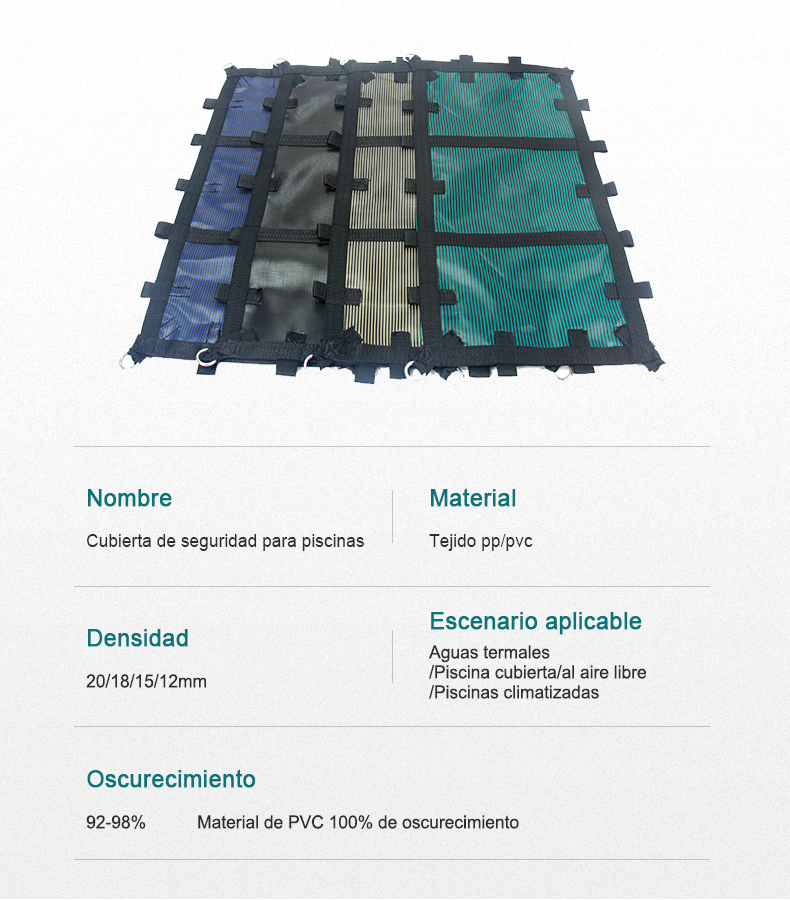 1. función de protección: excelente rendimiento de carga, para garantizar la seguridad contra ahogamientos de niños y mascotas, puede proteger la piscina las 24 horas del día; Al bloquear el diseño de la correa, se elimina el riesgo de manipulación incorrecta de los niños pequeños;
