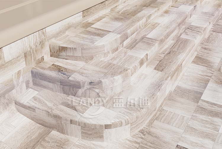 El producto es suave y elástico; Respetuoso del medio ambiente y no tóxico, seguro de usar; Patrón realista y color estable; Fácil instalación, fácil mantenimiento, ahorro de costes; Buen rendimiento a prueba de agua, protección antideslizante, resistencia al cloro, resistencia UV, alta resistencia al desgaste, resistencia al rasguño, resistencia al rasgón, etc.; Antibacteriano y no tóxico, larga vida útil.