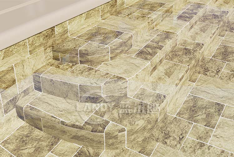 产品柔软、富有弹性;环保无毒,使用安全;图案逼真、色泽稳定;易安装、易维护、节约成本;良好的防水性能、防滑保护、耐氯、抗UV、耐侯性强、耐磨、防刮、抗撕裂等性能;抗菌无毒,使用寿命长。