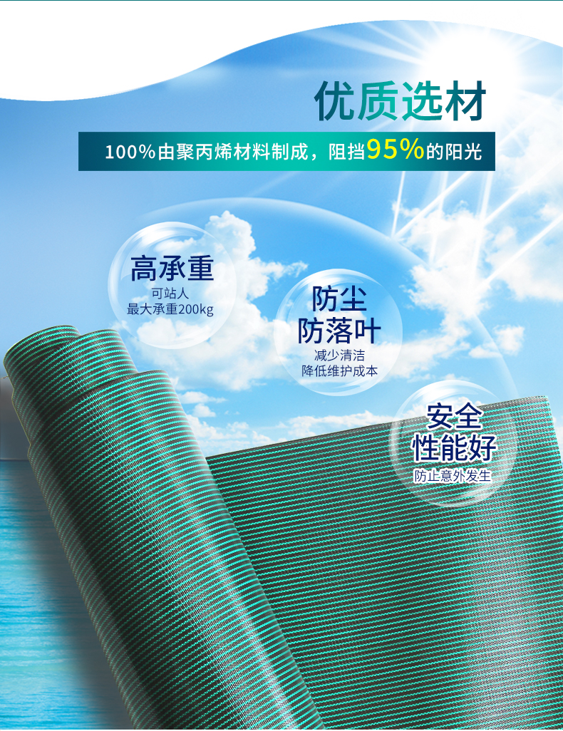 4、节能:可遮阳、减少水汽蒸发,节能保温;