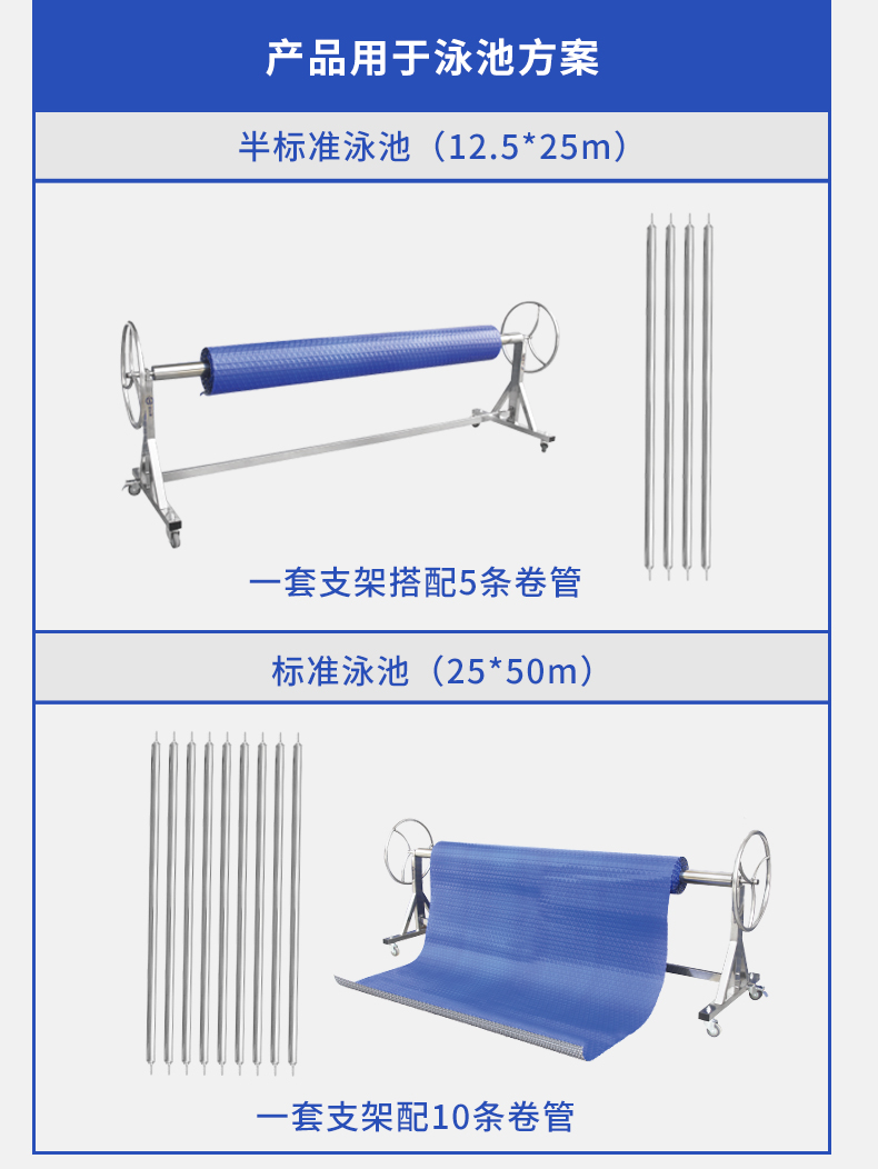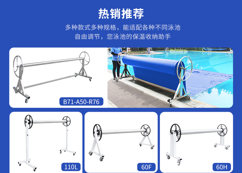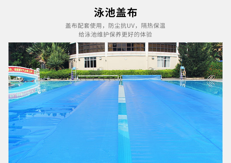 配合泳池保温盖布使用,用于多种水池环境的保温防尘,如酒店泳池、社区泳池、赛事泳池、学校泳池、体育馆泳池、私家泳池、温泉水疗、亲子泳池等。