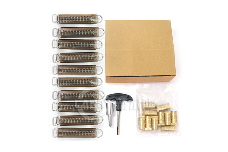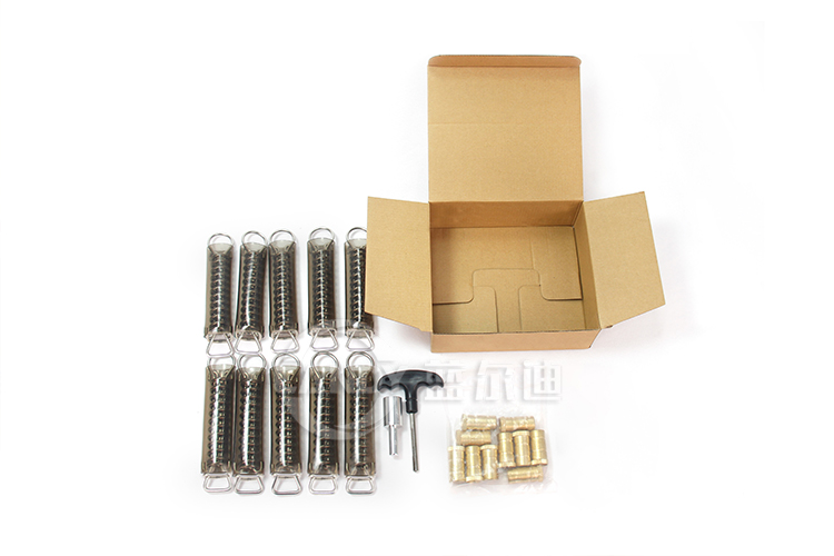 五金工具包分别包括:黄铜铆钉,专用弹簧+弹簧保护套,捣鼓件,内六角扳手等