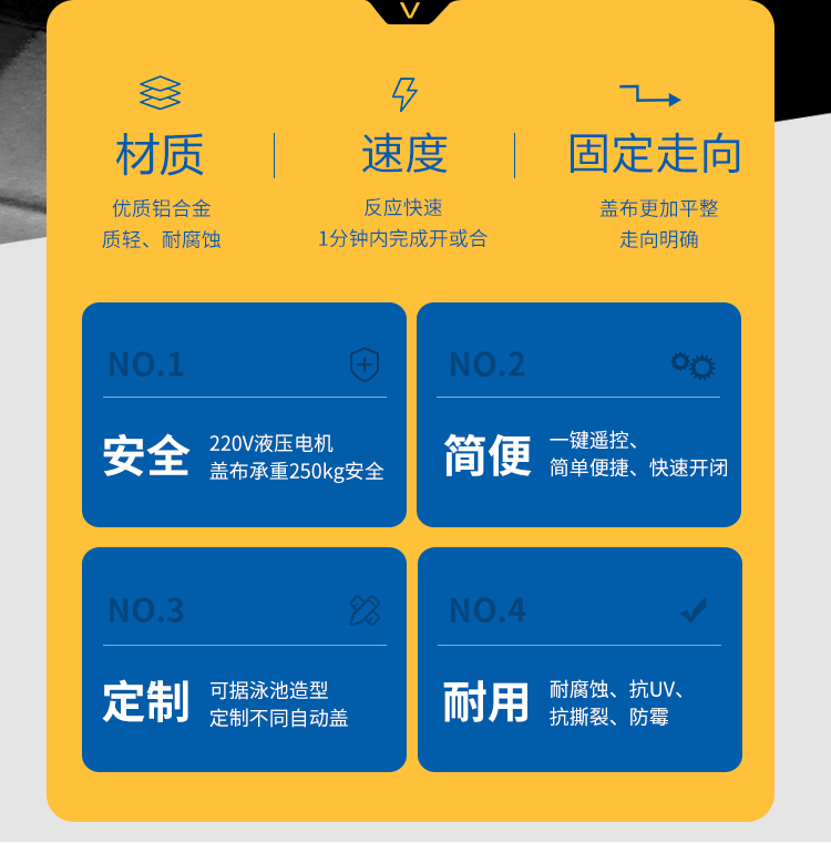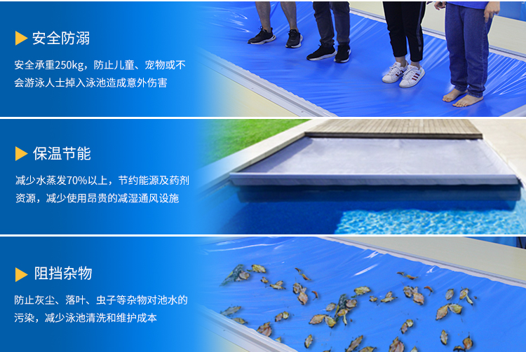 适用于酒店泳池、别墅泳池、私家泳池等高端泳池环境,节能保温,安全防溺水。