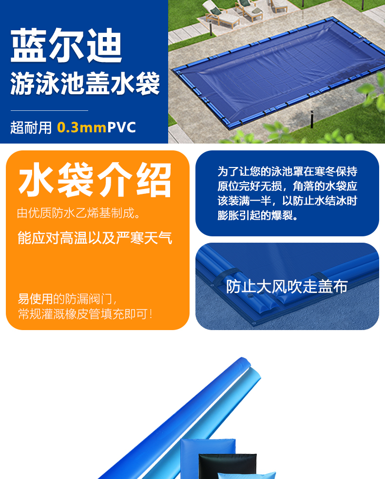 让您的泳池盖在寒冬保持原位完好无损,防止大风吹走盖布。