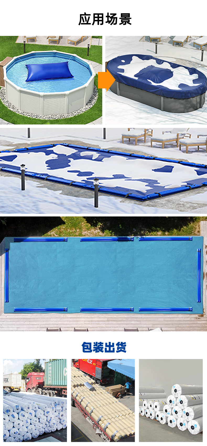 适用于酒店泳池、社区泳池 、私家泳池、温泉水疗、亲子泳池等,辅助保温盖使用。