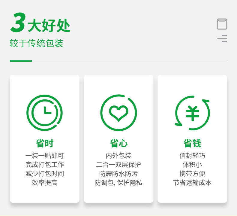 重量轻,节省邮费材料中的气泡可选回收塑料,克重不变更环保