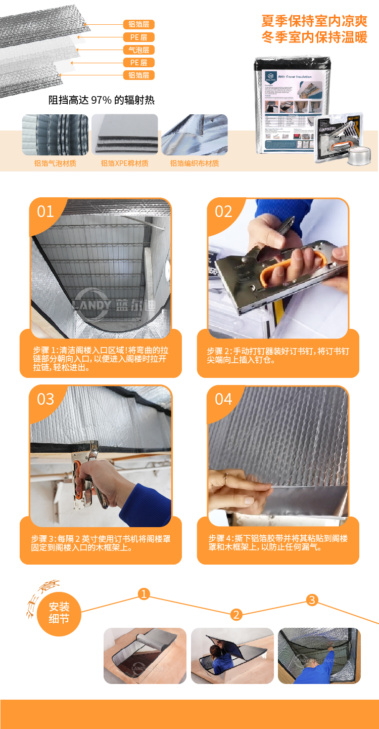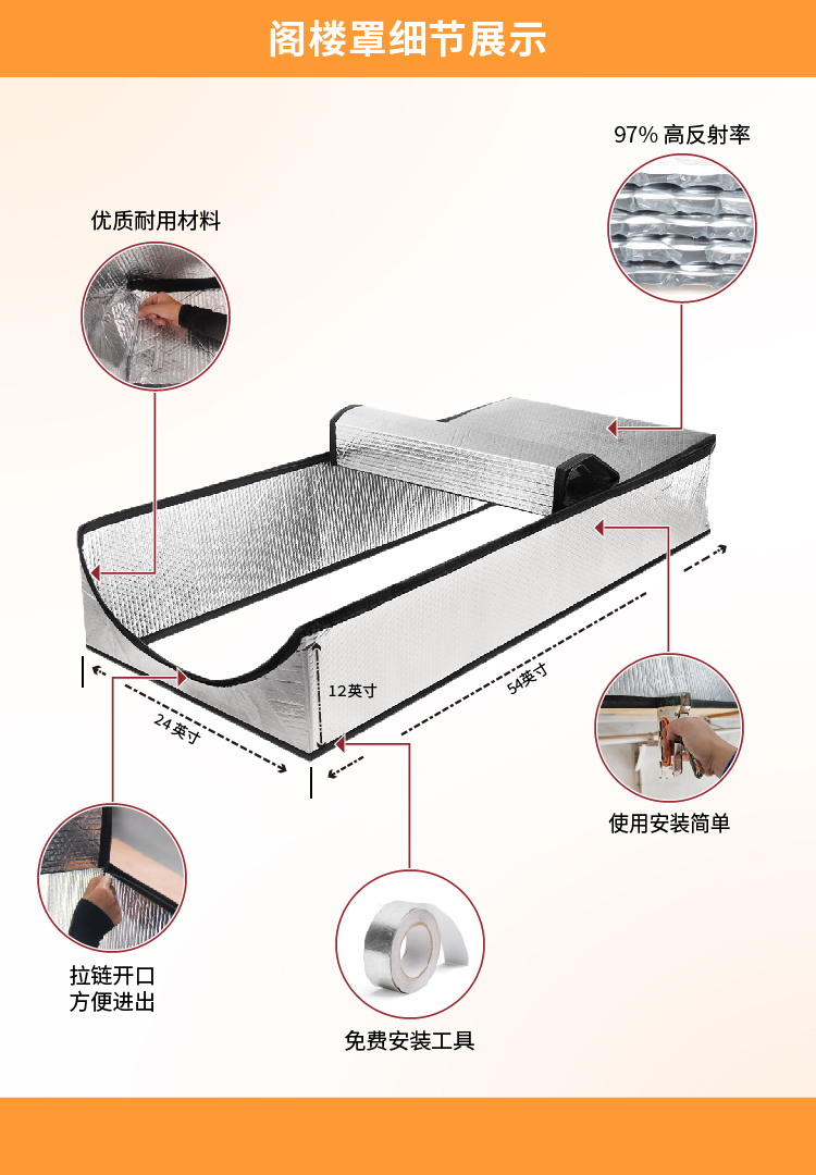 - 夏季防止阁楼热量进入屋内;冬季反射并保留热量