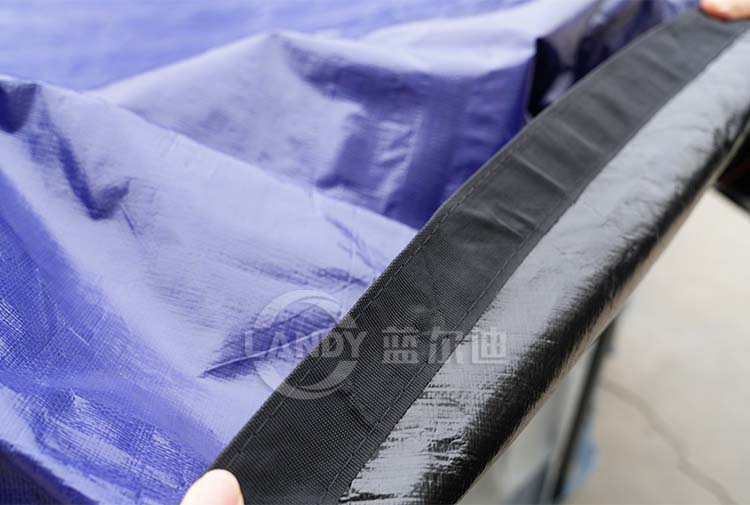 3. three layer composite polyethylene material, double needle suture with UV resistant nylon thread, triple thickness folding, 12 × 12 loose linen (gauze) per square inch
