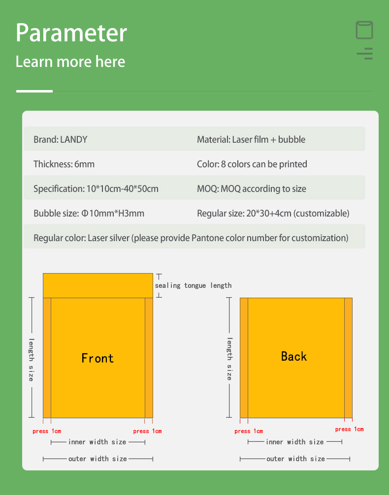 The internal and external size standards are shown in the figure (graphic design drawing: external size with 1cm edge pressure, tongue 5cm)