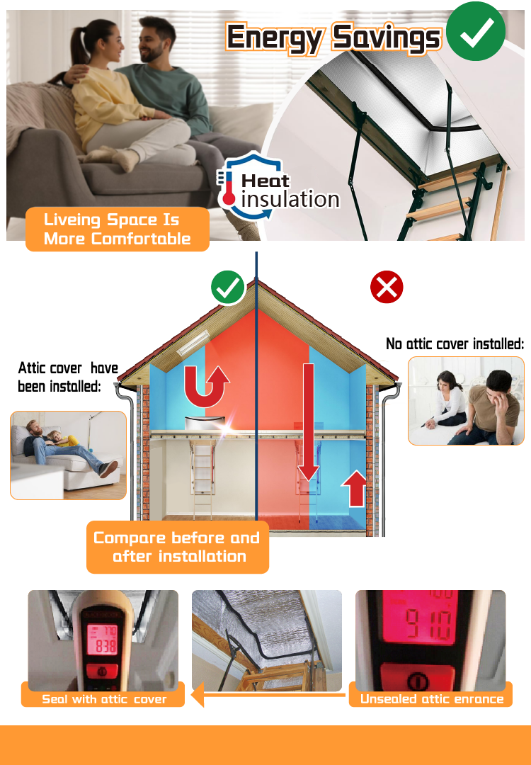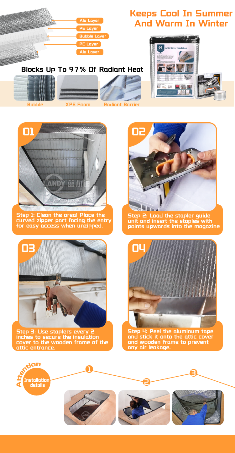Preventing attic heat from entering the house in summer: Reflecting and retaining heat in winter