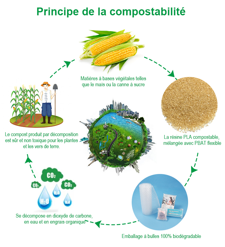 Environnements de dégradation : dégradation dans les sols, dégradation par compostage, dégradation du milieu marin, dégradation dans les milieux d'eau douceProduits de dégradation Bioénergétique cellulaire, CO2, CH4 et H2O
