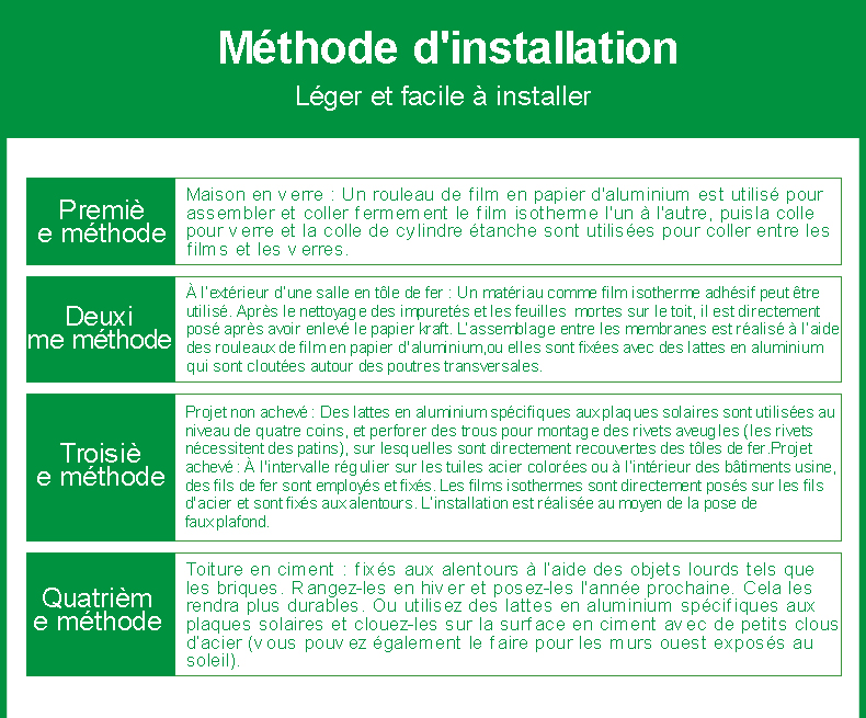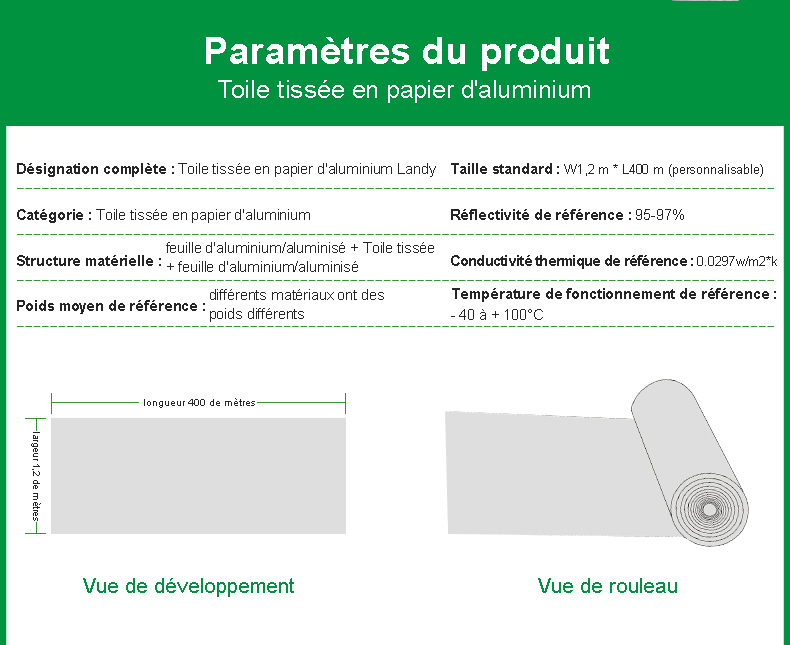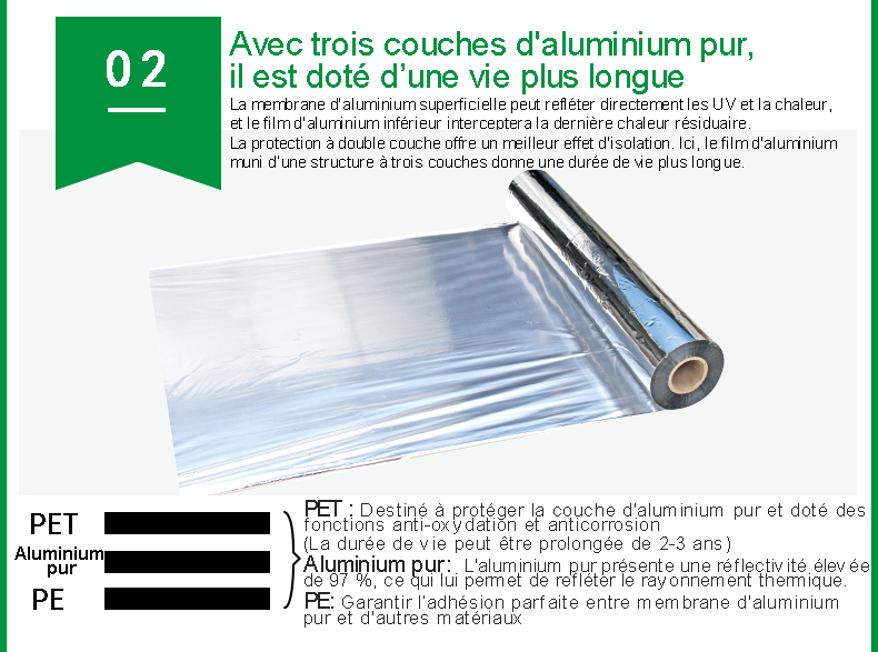 95% -97% de réflexivité, ≥15℃ différence de température interne-externe, conductivité thermique ≤0.035
