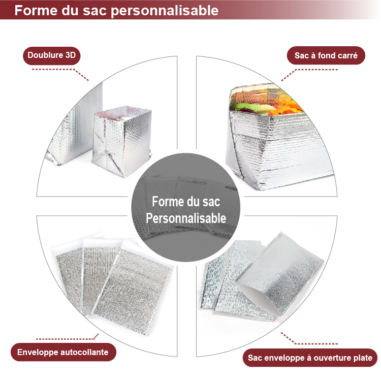 Emballage de produits congelés Bubble Aluminium Film enveloppe isolante sac