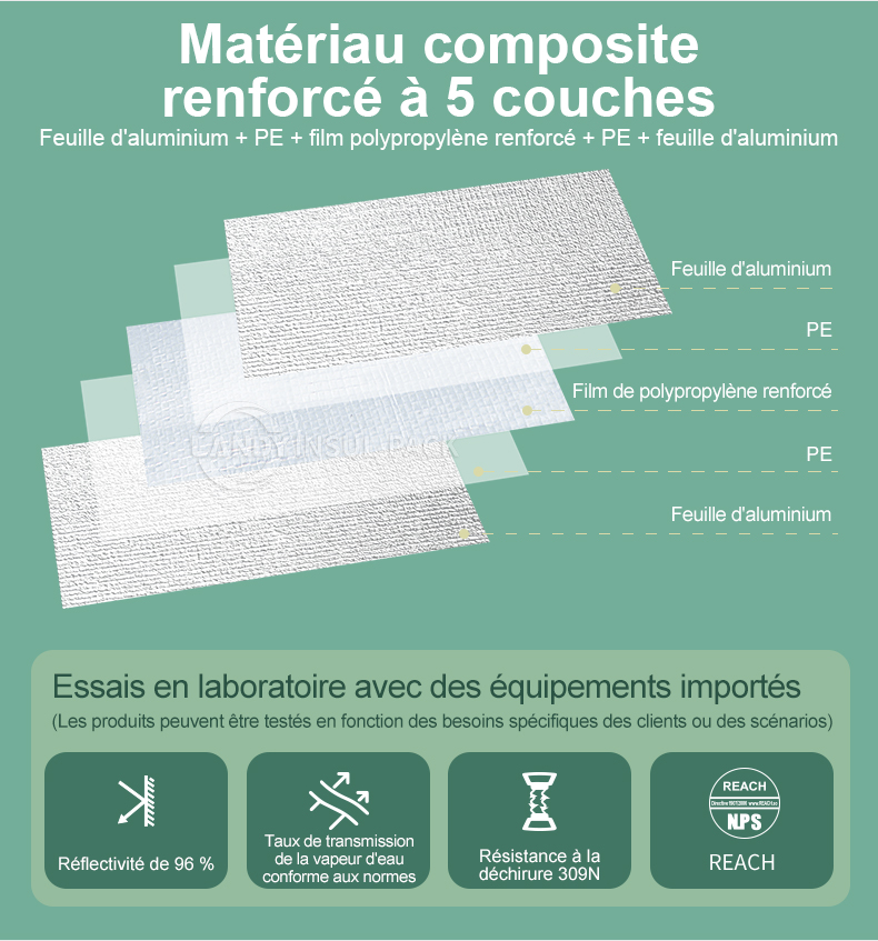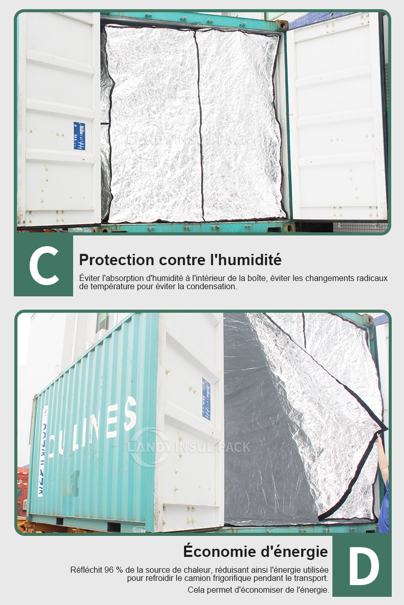 D. économie d’énergie: réfléchissez 96% de la source de chaleur, réduisez l’énergie de refroidissement pendant le transport de conteneur, ainsi réalisez l’effet d’économie d’énergie