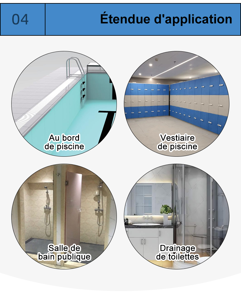 Approprié à la piscine d’hôtel, à la piscine communautaire, à la piscine privée, au parc aquatique, au spa de source chaude, à la piscine de paysage, à la piscine de parent et à d’autres environnements de piscine pour répondre à différents besoins de drainage.