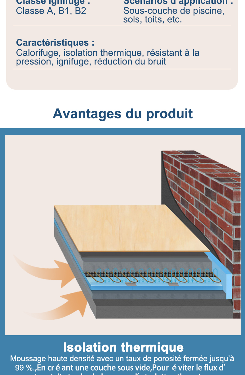 Revêtement de piscine, isolation du chauffage au sol, isolation des plafonds, isolation intérieure et extérieure, isolation des toits extérieurs, etc.