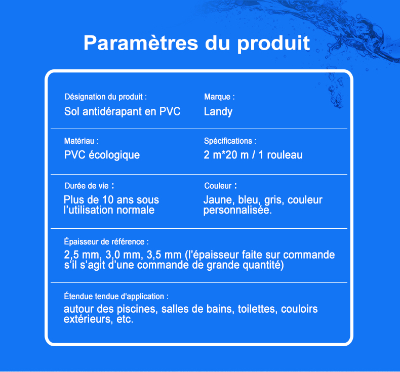 Pour la piscine d’hôtel, la piscine communautaire, la piscine privée, le parc aquatique, le spa de source chaude, la piscine de paysage, la piscine de parent et d’autres rives antidérapantes, peut également être largement utilisé dans la salle de bain, la cuisine, le gymnase, l’hôpital, les lieux commerciaux, les sites industriels, les terrains de jeux pour enfants et les centres d’activité des personnes âgées, etc., pour répondre aux besoins antidérapants de différentes scènes.