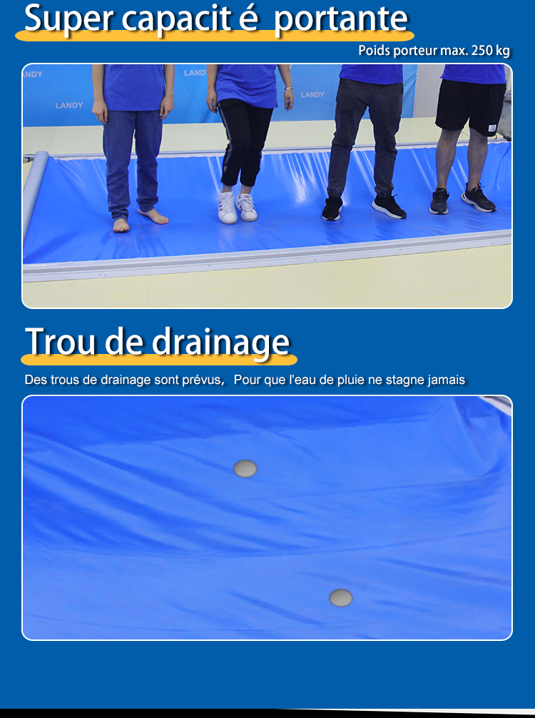 Épaisseur de couverture: 0.6mm(zone de piscine <100㎡); 0.45mm(zone de piscine >100m)