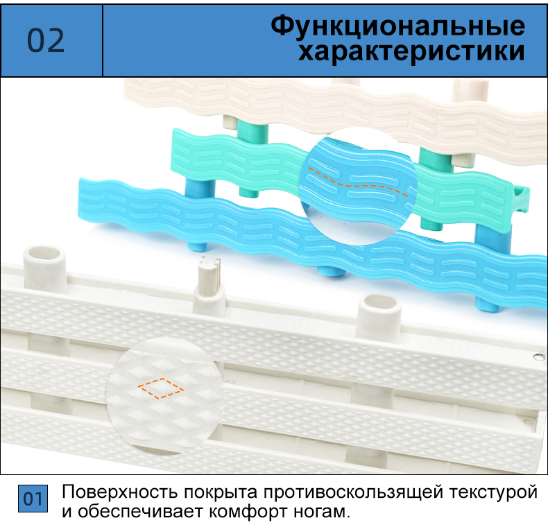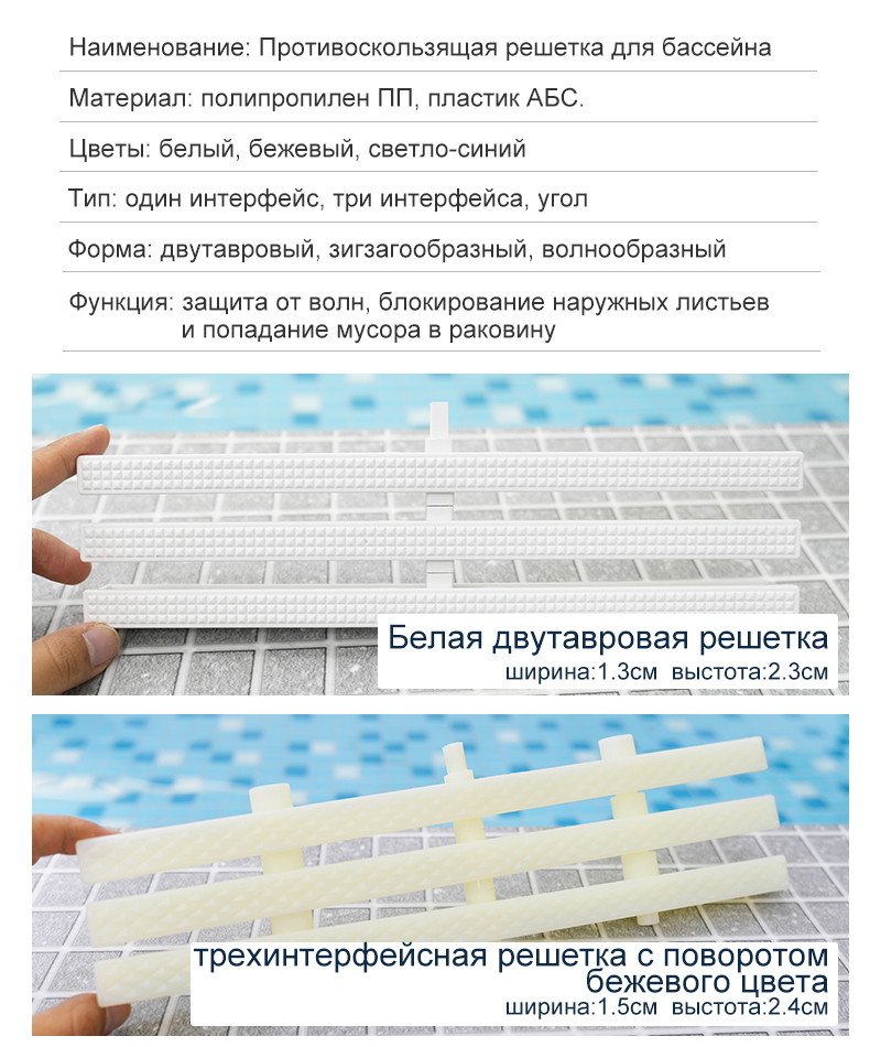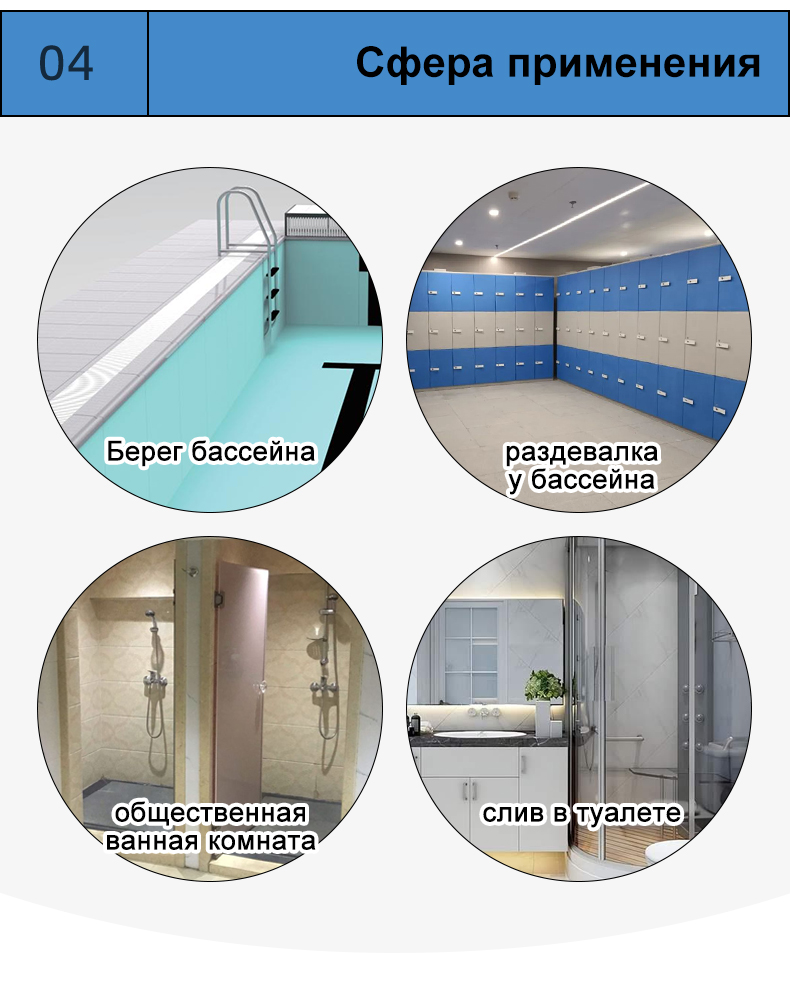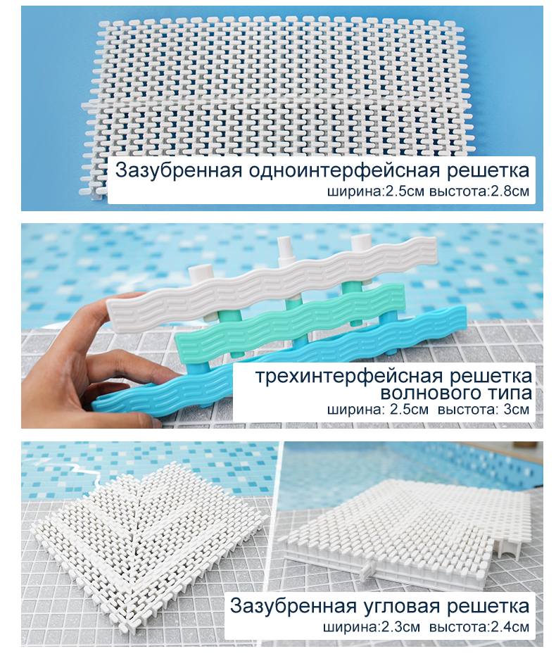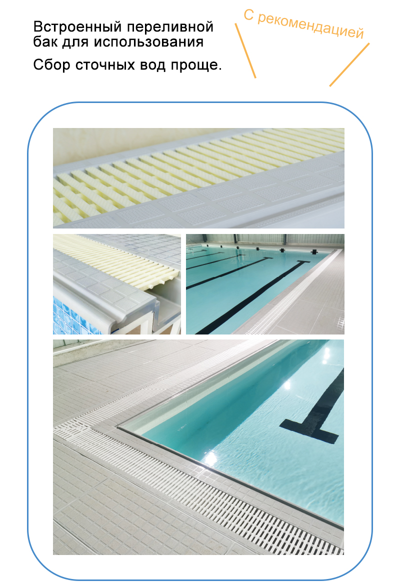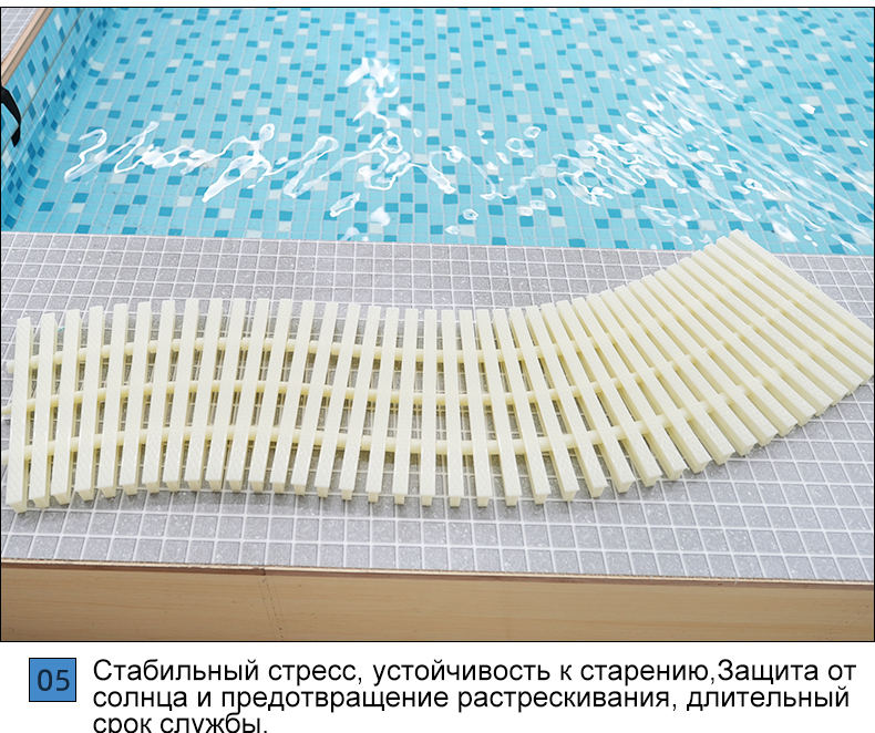 Используется у бассейна в качестве дренажной и скользкой роли, в то время как пловцы могут входить и выходить из бассейна, обеспечивая безопасность.