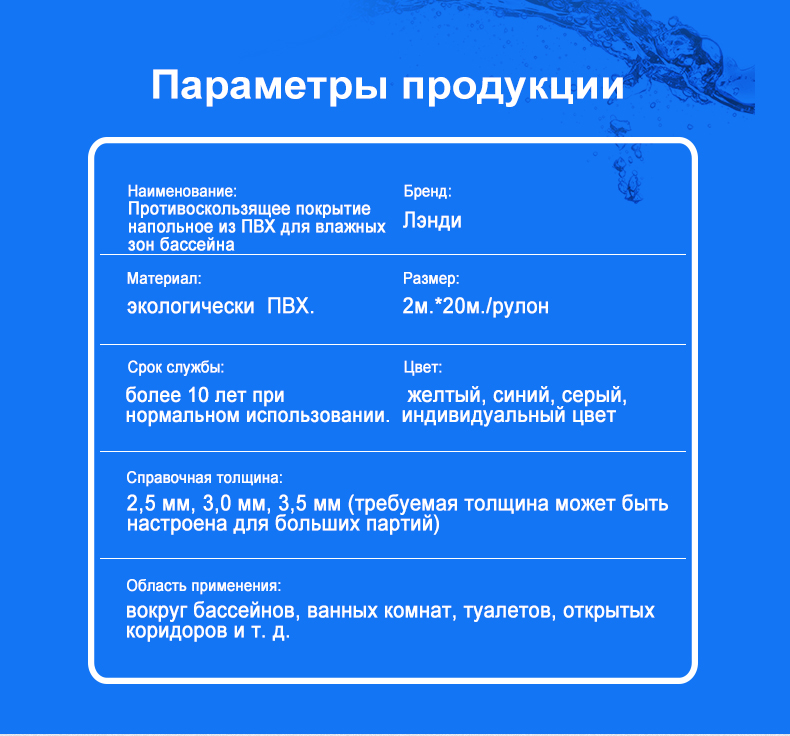 В таких местах, как бассейн в отеле, общественный бассейн, частный бассейн, аквапарк, аквапарк, бассейн с водой, бассейн с пейзажем, бассейн с детьми и бассейн с детьми, его можно широко использовать в таких местах, как ванная, кухня, спортзалы, больницы, промышленные места, детские площадки и центры деятельности для пожилых людей, чтобы удовлетворить потребности в катании на роликах в различных местах.