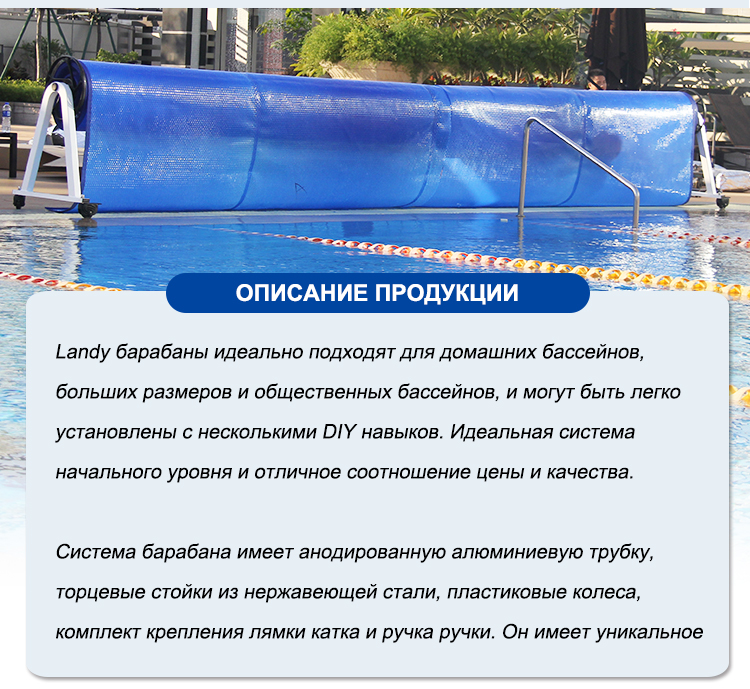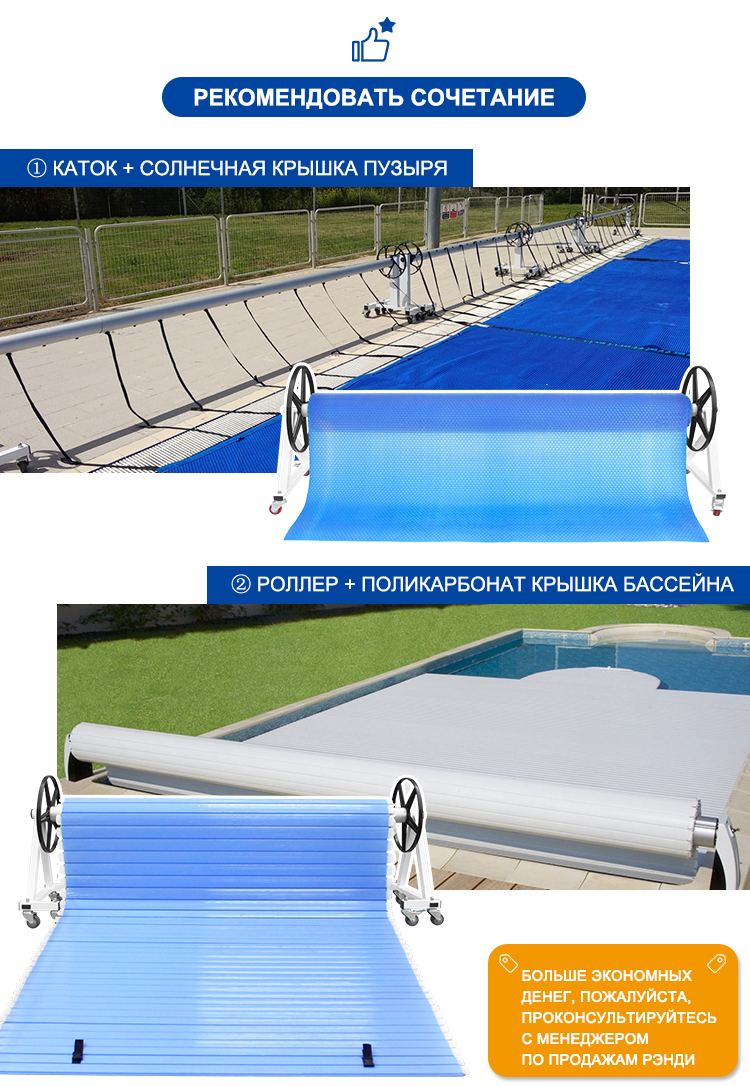 В сочетании с использованием теплоизоляционной крышки бассейна, используется для теплоизоляции и пылезащиты различных условий бассейна, таких как бассейн отеля, бассейн сообщества, бассейн для соревнований, бассейн школы, бассейн стадиона, частный бассейн, спа - салон, бассейн для родителей и детей и так далее.