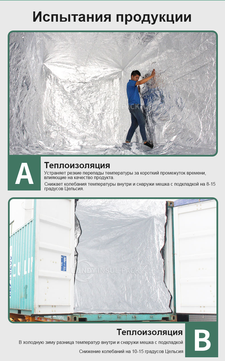 А. Изоляция: устранение резких изменений температуры в течение короткого периода времени, влияющих на качество продукции, колебания температуры внутри и снаружи футеровочного мешка могут быть снижены на 8 - 15 градусов Цельсия