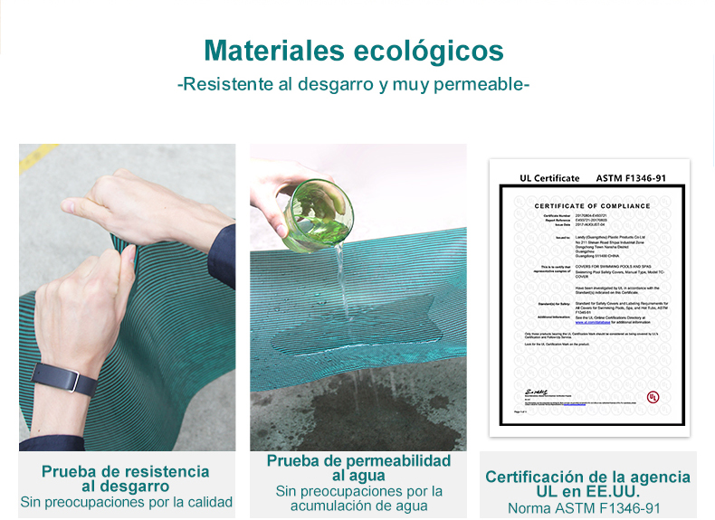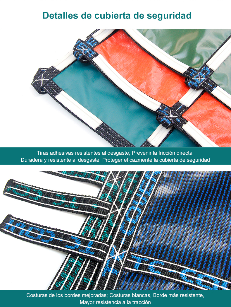 1. función de protección: excelente rendimiento de carga, para garantizar la seguridad contra ahogamientos de niños y mascotas, puede proteger la piscina las 24 horas del día; Al bloquear el diseño de la correa, se elimina el riesgo de manipulación incorrecta de los niños pequeños;