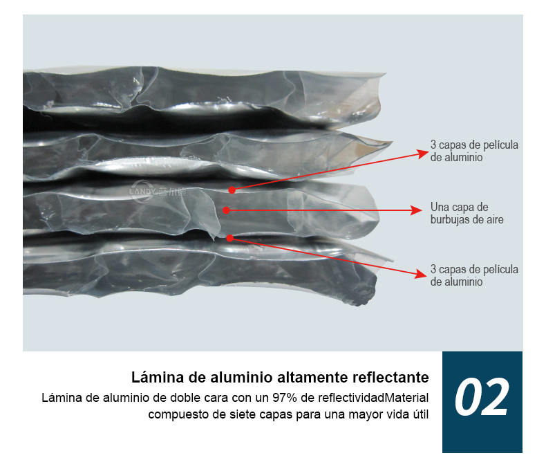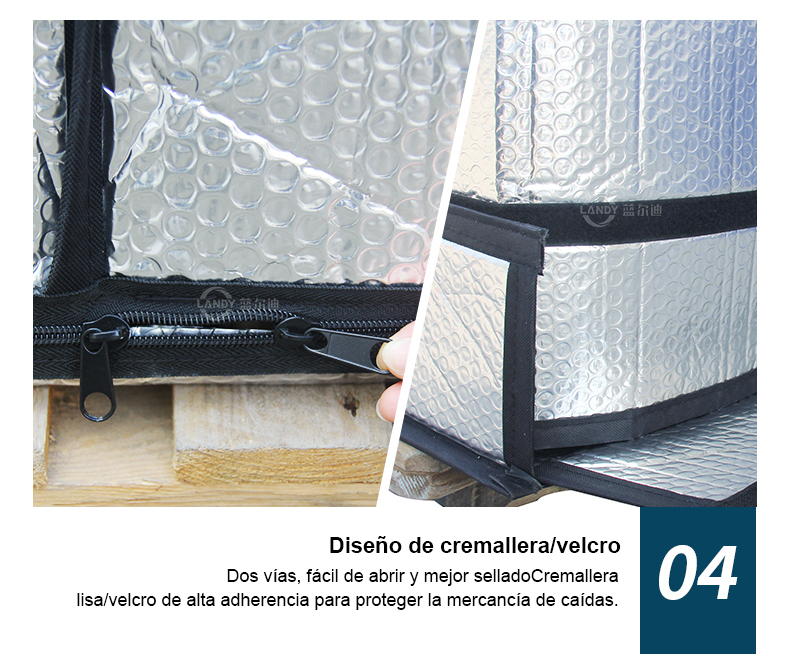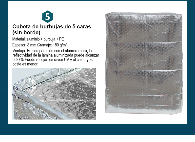 Material:película de burbuja de aluminio /EPE pearl wool/tela tejida