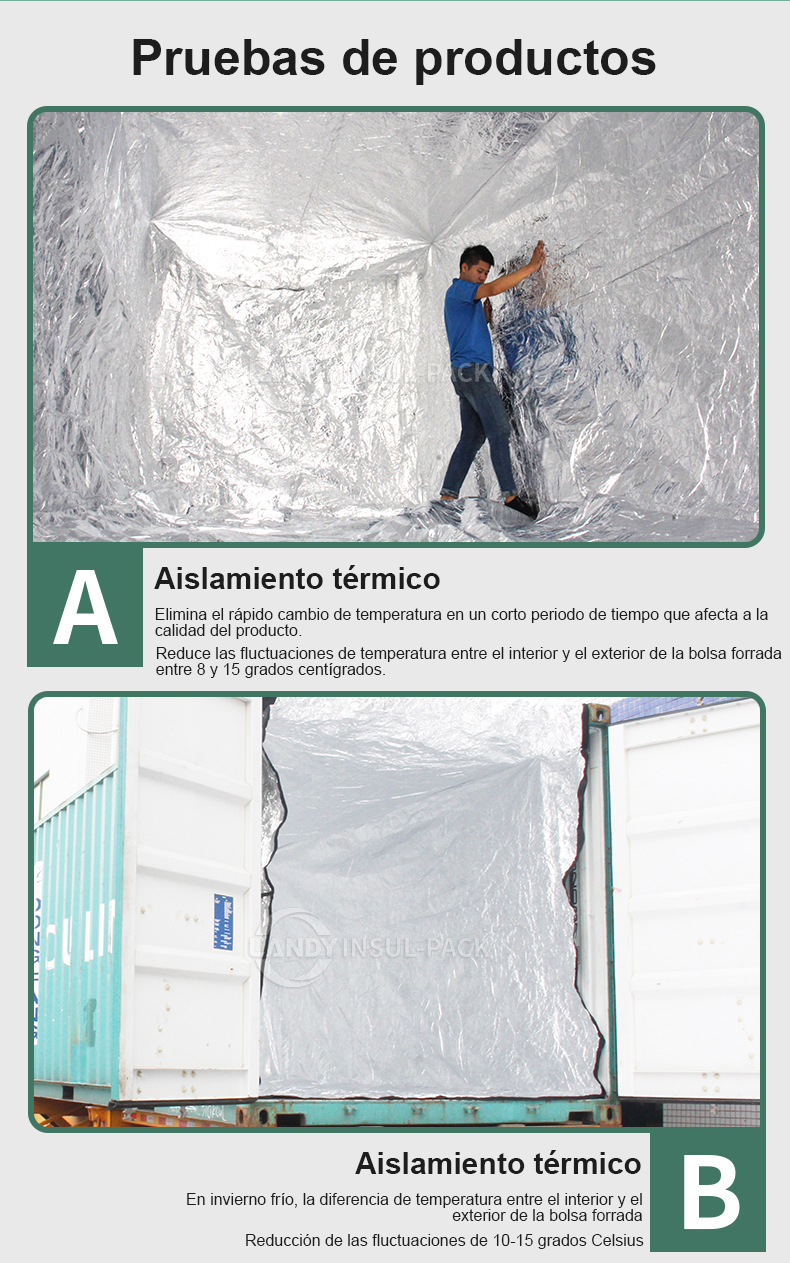 A. aislamiento térmico: eliminar los cambios bruscos en la temperatura en un corto período de tiempo afecta la calidad del producto, la fluctuación de la diferencia de temperatura entre el interior y el exterior de la bolsa de revestimiento puede reducir 8-15 grados centígrados