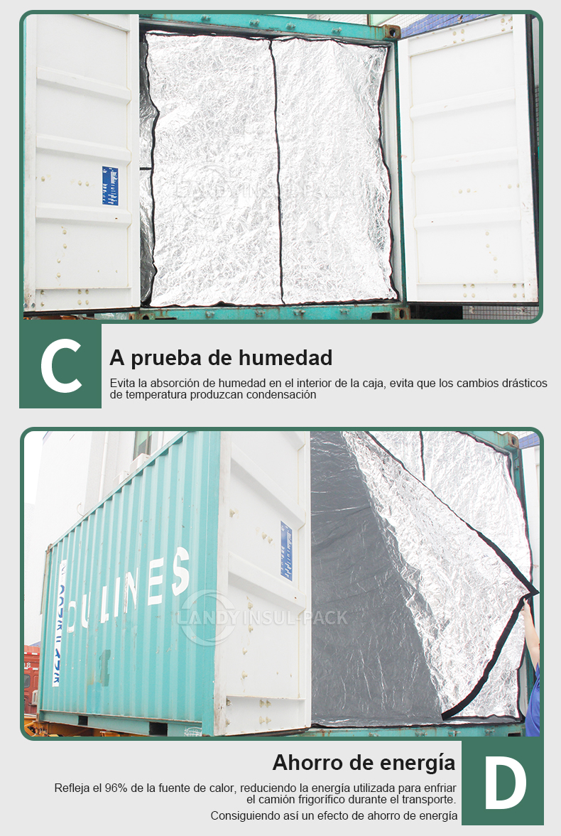 D. Ahorro de energía: refleje el 96% de la fuente de calor, reduzca la energía para enfriar el contenedor durante el transporte, de modo que alcance el efecto de ahorro de energía