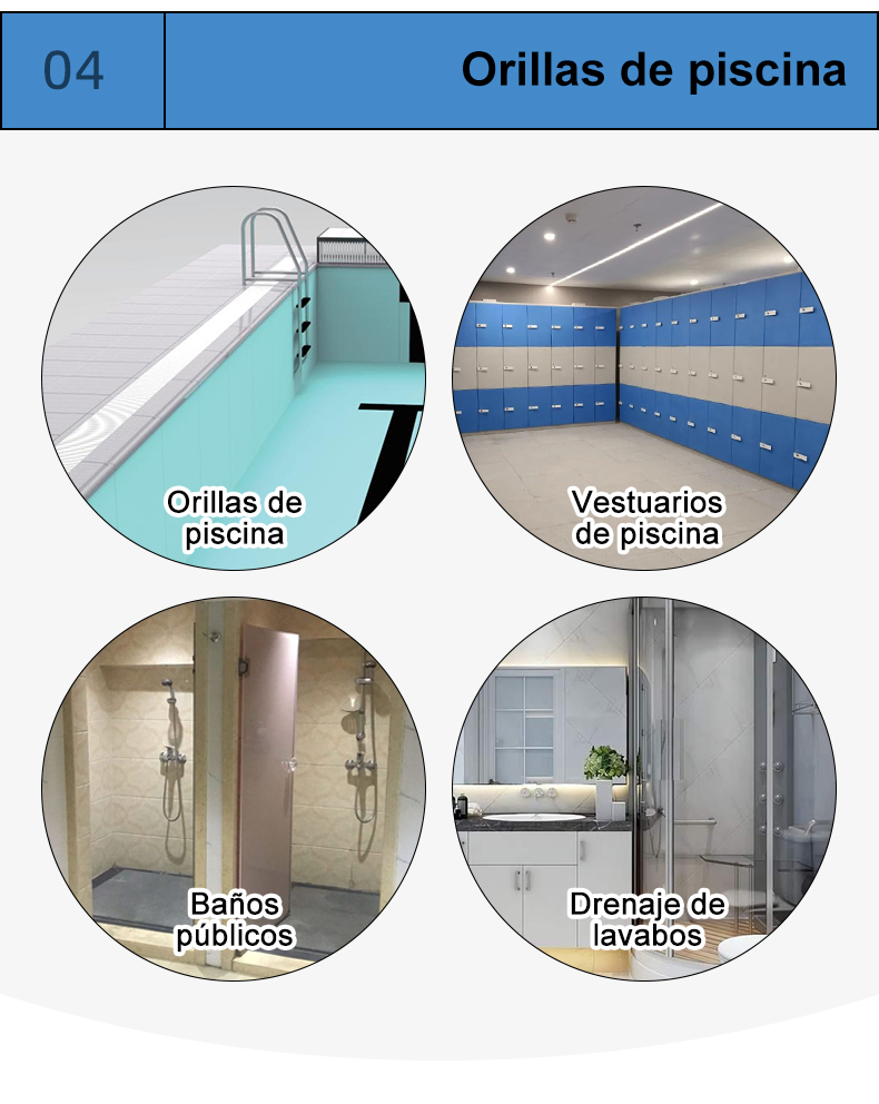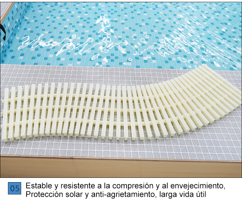 Utilizado junto a la piscina, actúa como drenaje y antideslizante, a la vez que facilita el acceso de los bañistas a la piscina y garantiza la seguridad.
