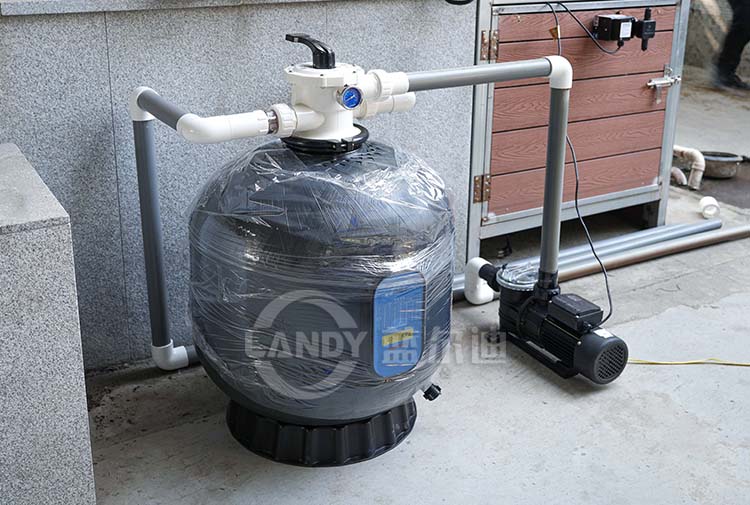 Cuando la bomba del tanque de arena está funcionando normalmente, el agua de la piscina que contiene partículas de suciedad en suspensión es presionada en la tubería del filtro por la bomba de agua de circulación, y luego guiada por el interruptor de control para llegar a la salida del filtro, el agua de la piscina se filtra a través del tanque de arena, y la suciedad diminuta es interceptada por el filtro y filtrada, y el agua filtrada se devuelve a la piscina desde la parte inferior del filtro por el interruptor de control y luego por la tubería. Todo este conjunto de procedimientos son automáticos continuos, y el tanque de arena de la piscina, el filtro del tanque de arena, la bomba de circulación y las tuberías forman juntos un sistema de circulación completo.